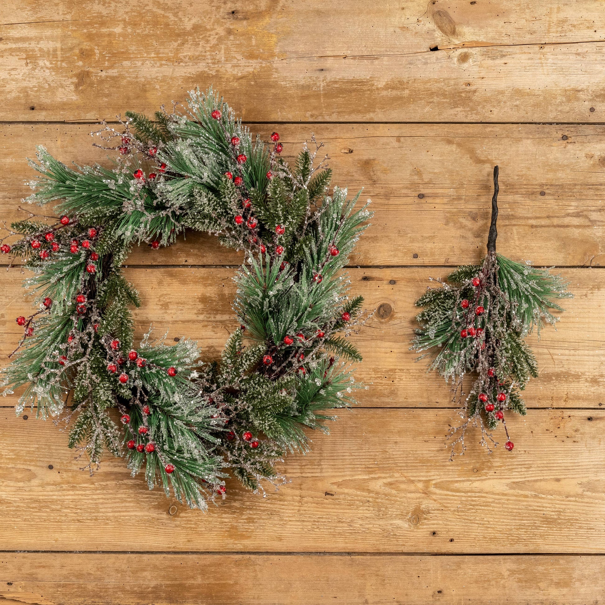 24" ICY MIXED PINE & RED BERRY WREATH