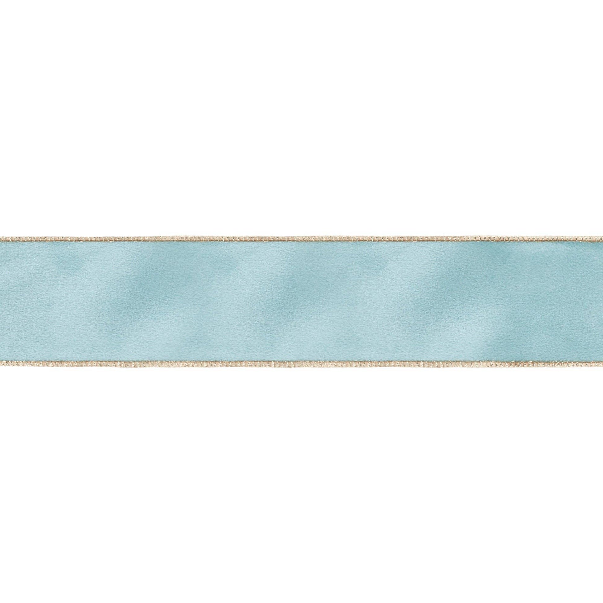 * Elegant 2 1/2" reversible velvet ribbon in a striking aqua and gold combination, perfect for adding a touch of luxury to any décor.