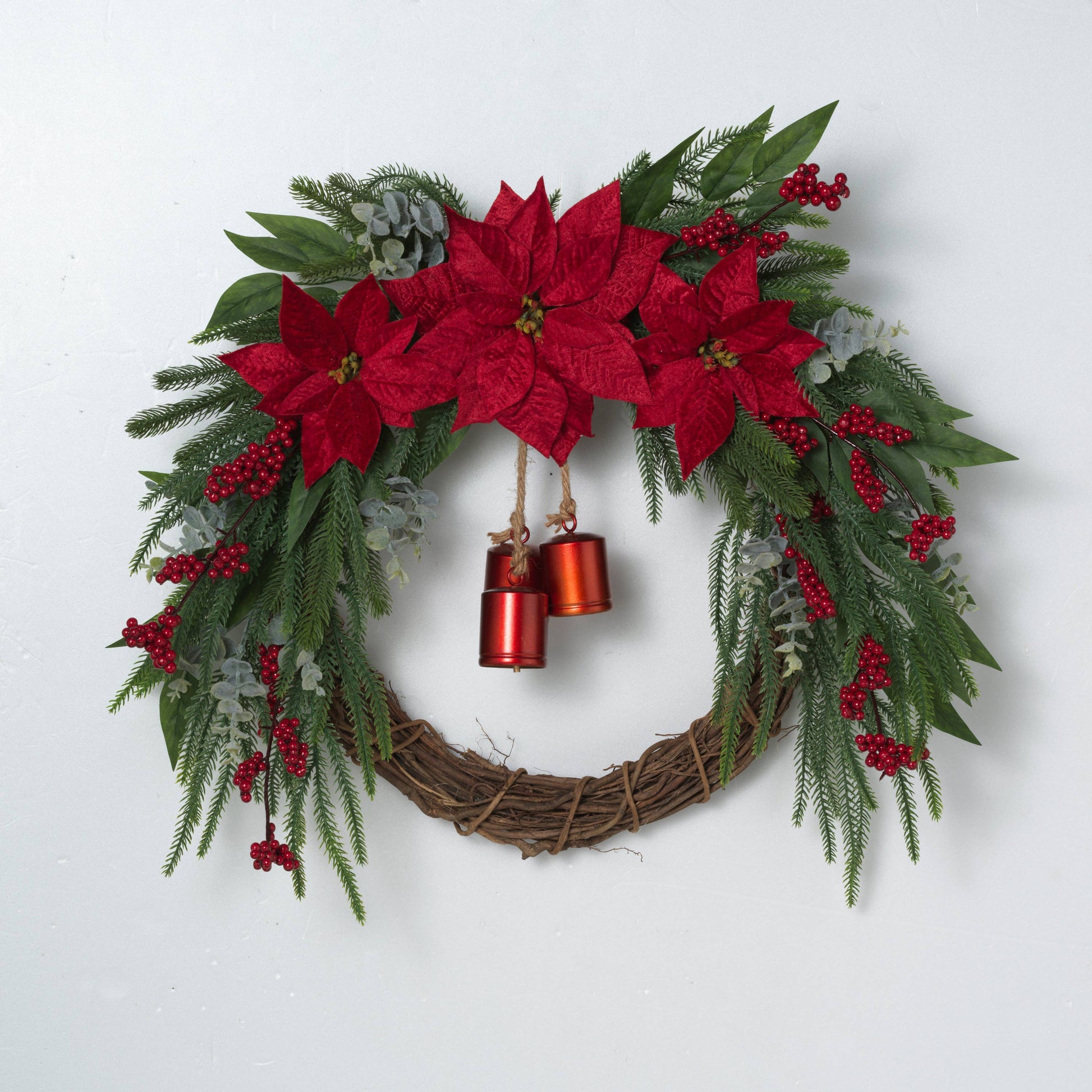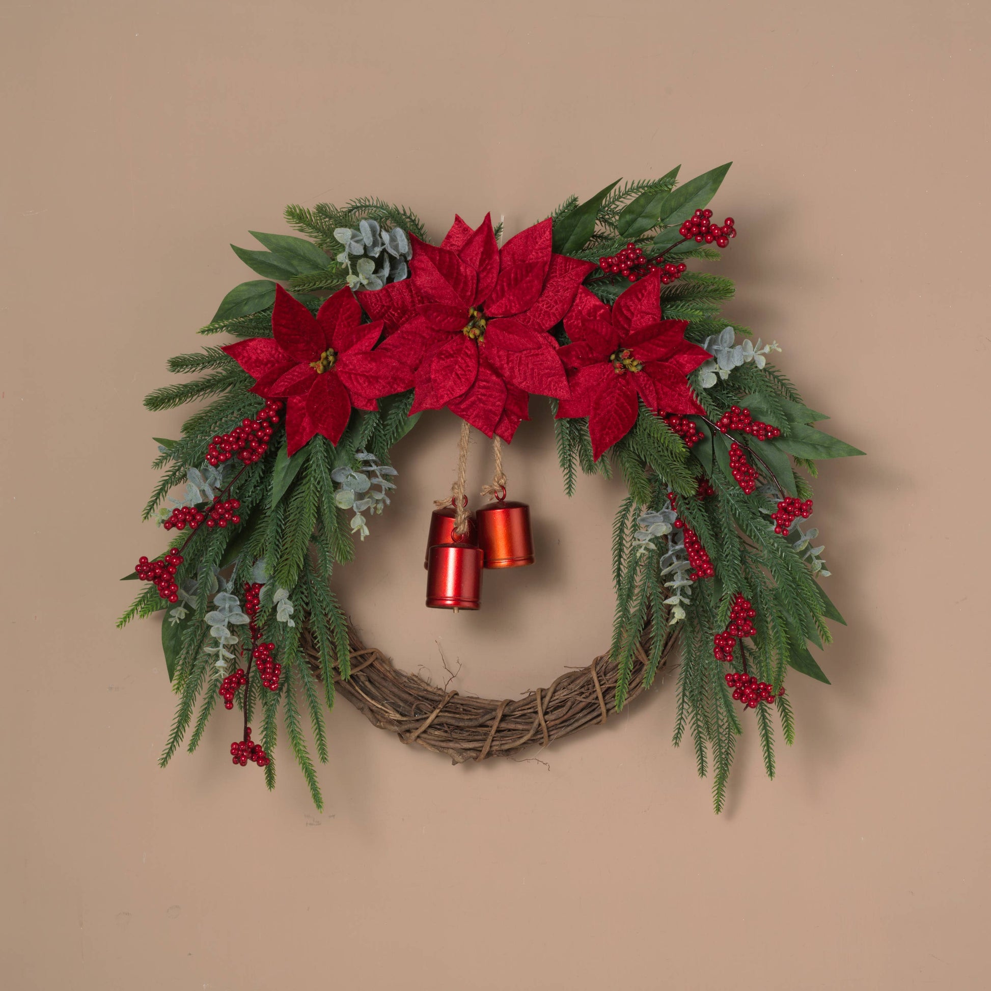 The Gerson Companies - Christmas 28"D Holiday Wreath w/ Poinsettia & Bells