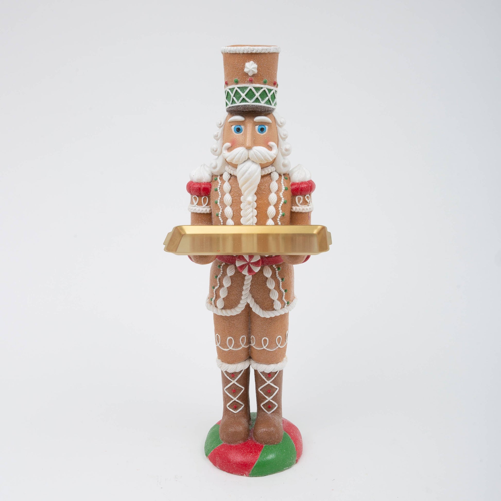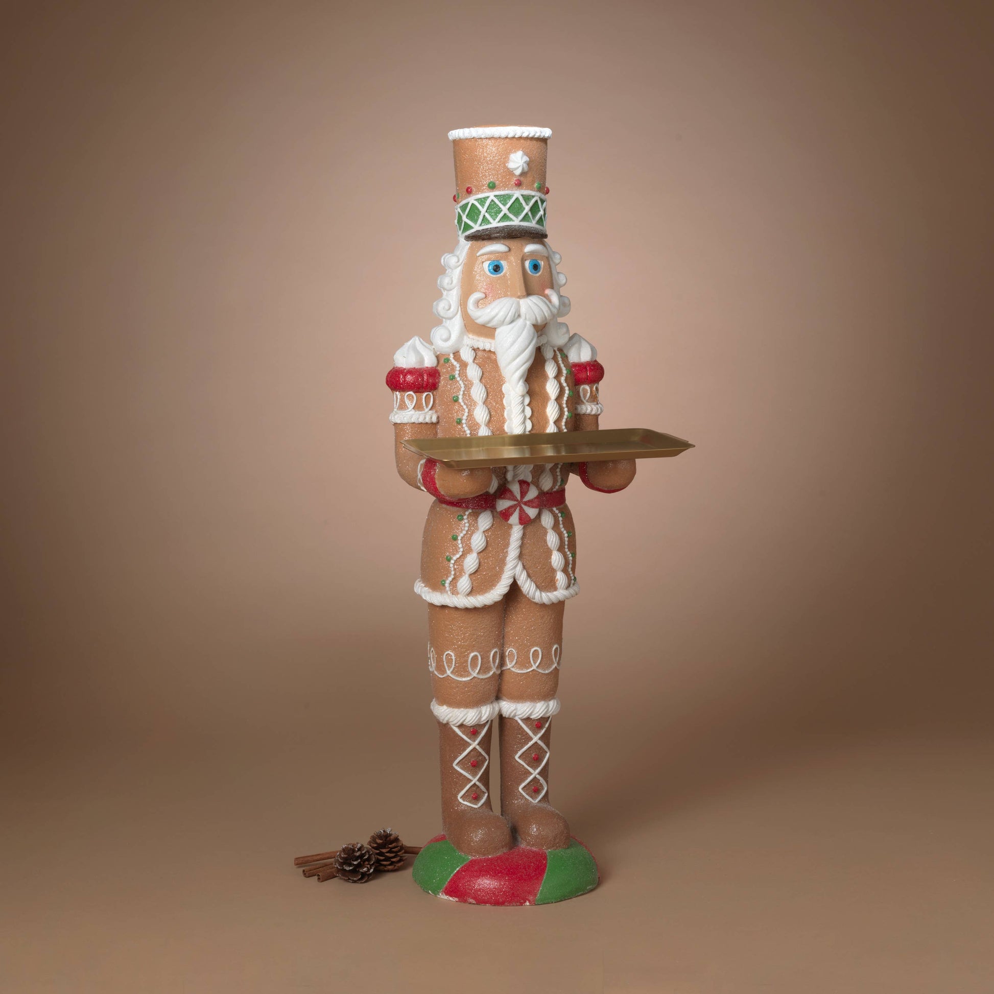 Christmas 35.8"H Magnesium Holiday Gingerbread Toy Soldier Holding Tray